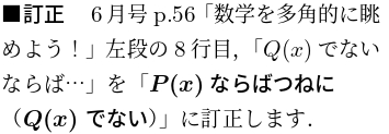 ■訂正 10月号p.56「数学アラカルト」例1の1行目の「1回ずつ」を「1回」に訂正します.
